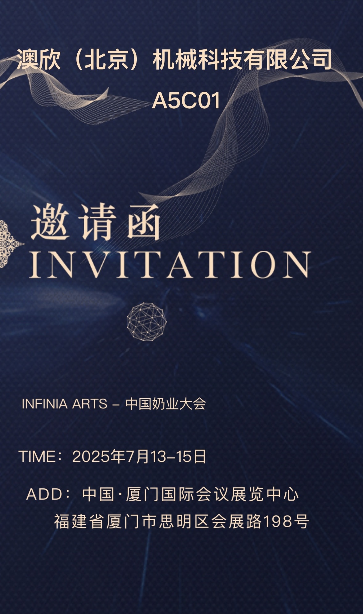 澳欣(北京)機械科技有限公司一直致力于為奶業(yè)提供先進的機械設(shè)備與技術(shù)解決方案,推動奶業(yè)的智能化、無人化、高效化發(fā)展。此次展會,我們將攜眾多創(chuàng)新產(chǎn)品與技術(shù)亮相,全方位展示公司在奶業(yè)機械領(lǐng)域的研發(fā)成果與實力,為您帶來全新的行業(yè)體驗。我們的展位號是A5C01,誠邀您蒞臨展位,與我們面對面交流,共商合作,共謀發(fā)展大計,一同探討奶業(yè)發(fā)展新方向,攜手共創(chuàng)奶業(yè)新輝煌 !
